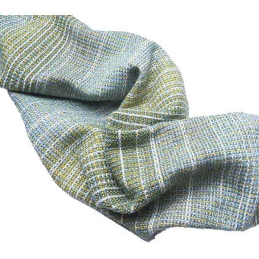 A fabric with a textured surface. The use of yarns in different thicknesses creates a lively effect; the fine luminous warp dialogues with the weft threads in matt cotton and chenille, to produce a twofold contrast of material and colour.